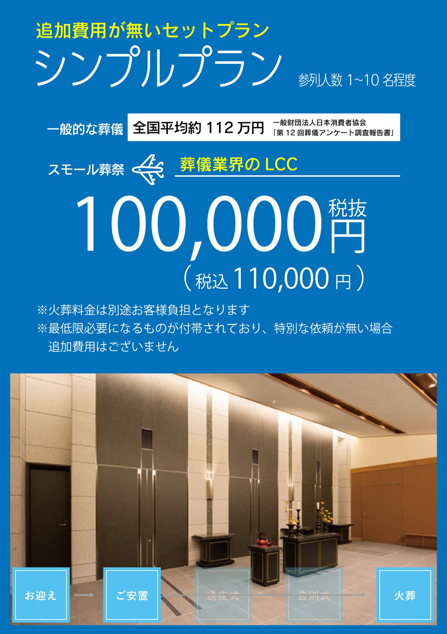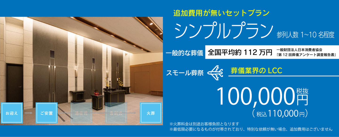 そこで私たちはLCC(格安航空会社)のように必要なものだけを付帯し、サービスの品質を維持しながら、ご葬儀のお手伝いはできないかと思い、火葬場近くに事務所を構え、格安葬儀のスモール葬祭を設立しました。